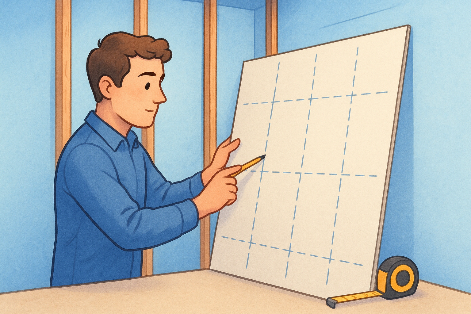 Your layout plan determines where seams fall and how much waste you generate , both of which directly affect your finishing time and material cost. The non-negotiable rule is that every seam must land on a framing member. A seam that falls in open air between studs will crack under normal seasonal movement, and no tape or compound will prevent it long term.